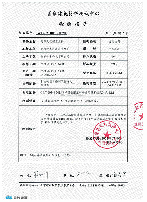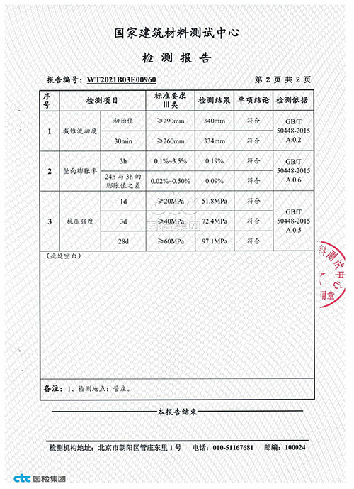通用型灌浆料检验报告